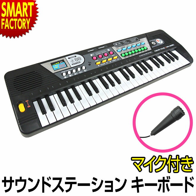 おもちゃ ピアノ キーボード サウンドステーションキーボード 49鍵盤 マイク付き 電池式 和音 音楽 演奏 電子キーボード キッズ 子供 玩具 楽器玩具 誕生日 プレゼント ギフト こどもの日 ☆